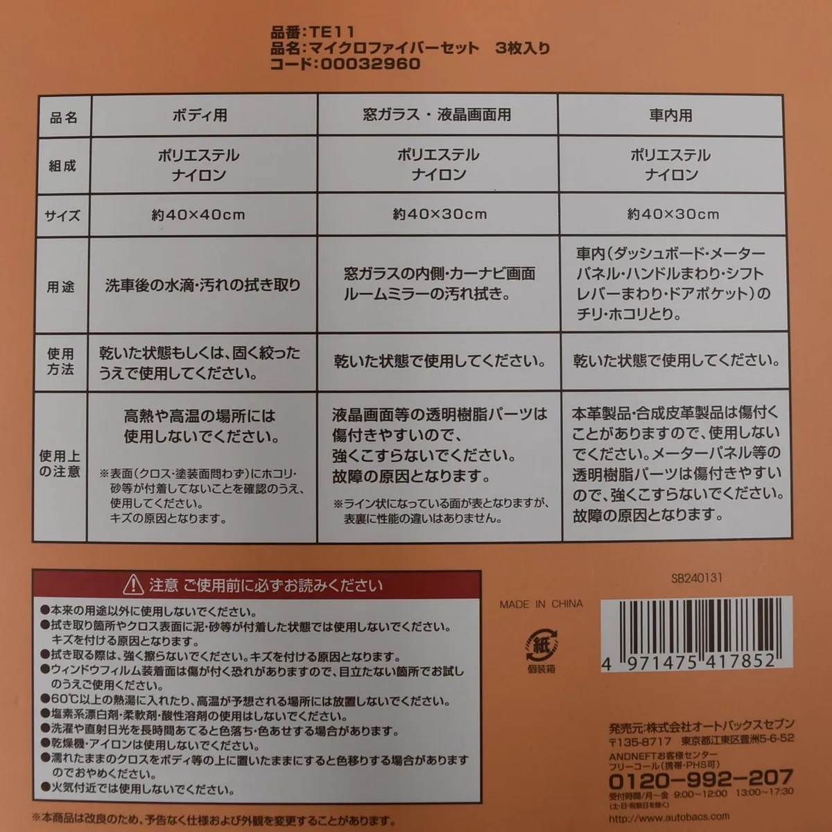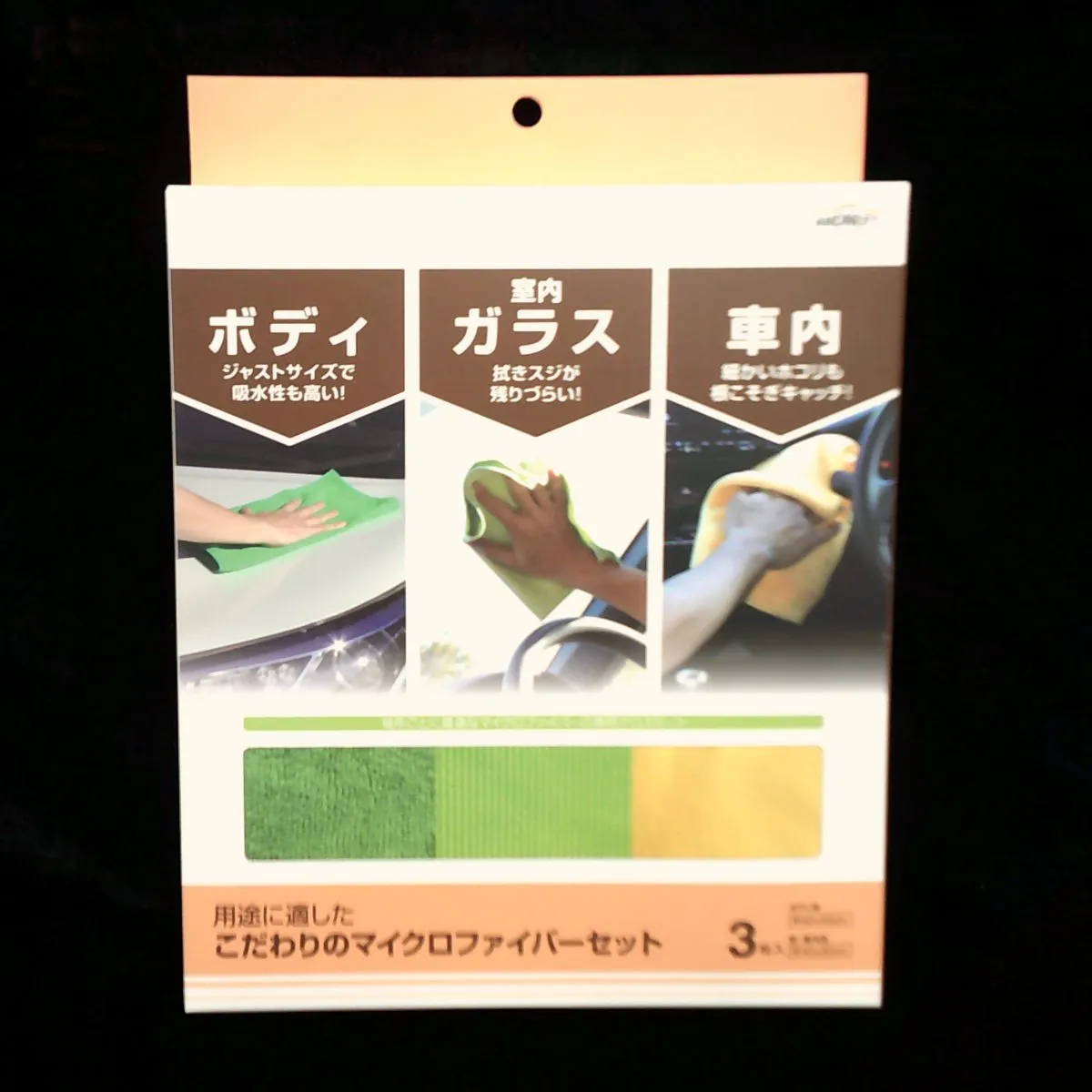 ■ボディ用、内窓・液晶用、車内用と洗車に必要な3種類のクロスをひとつにセットにしました。これ一つで全てまかなえます