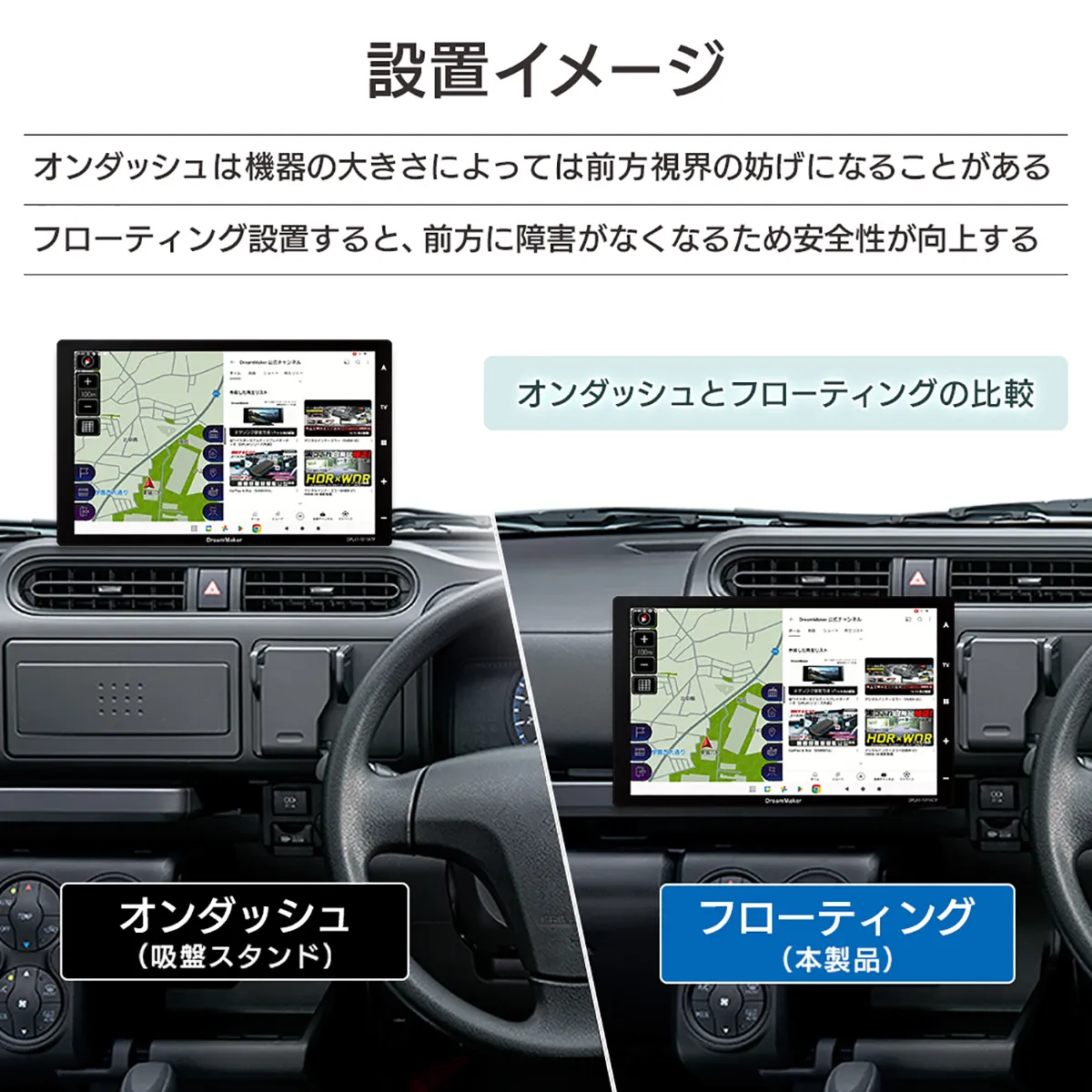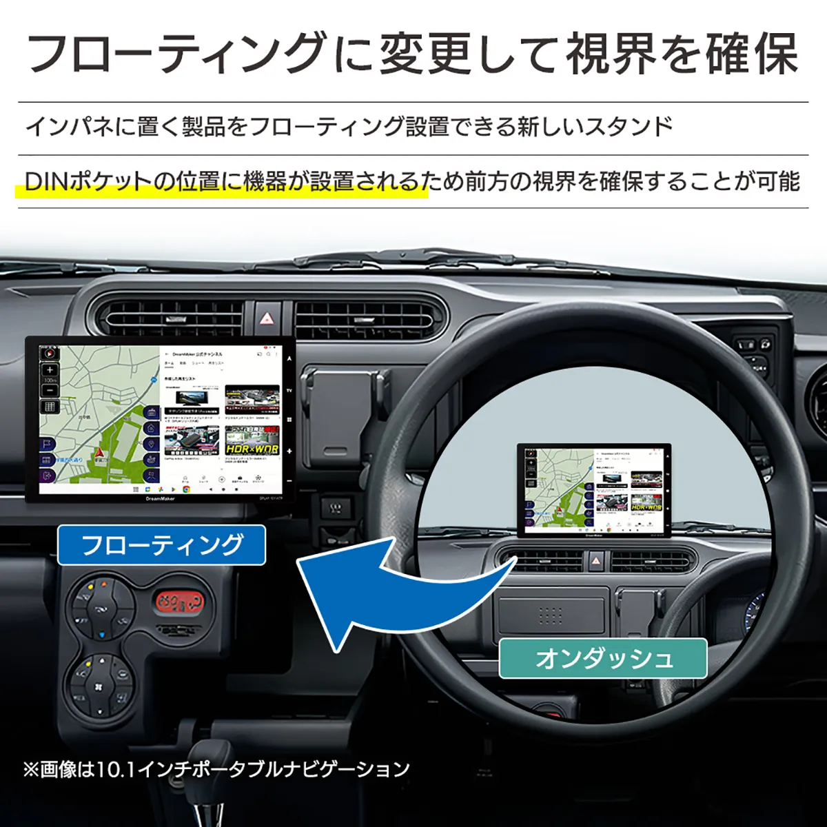 前方視界を妨げない1DINBOX型フローティングスタンド